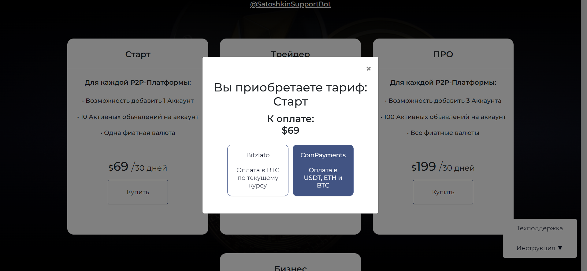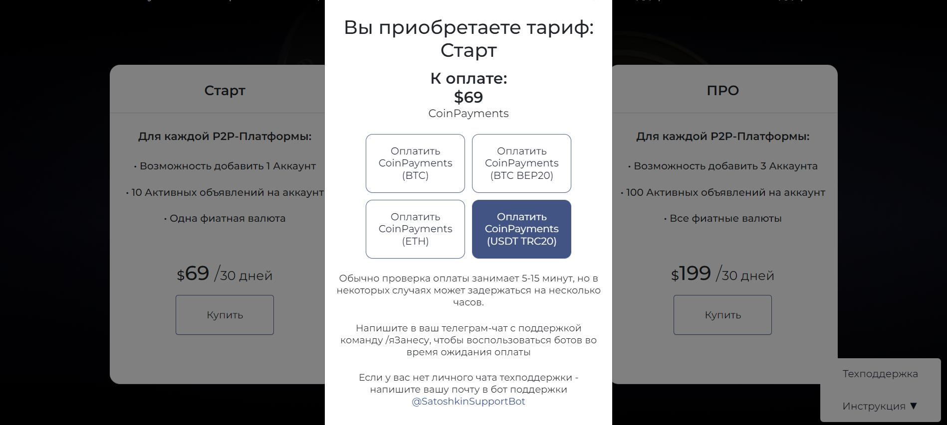 Как оплатить тариф через CoinPayments